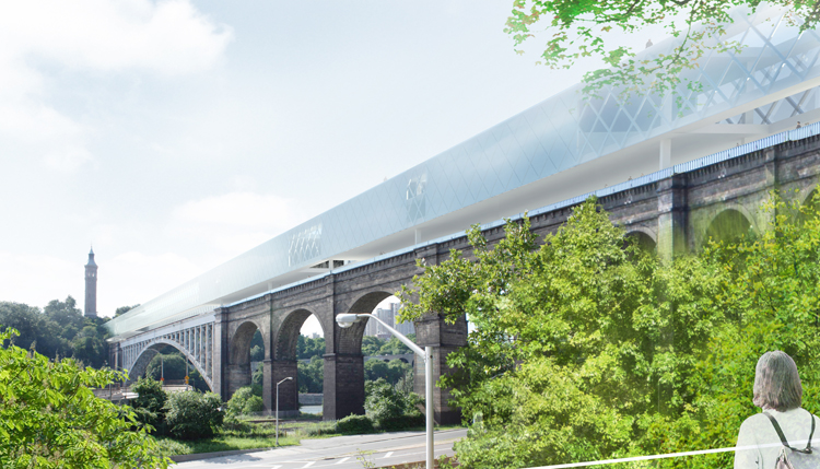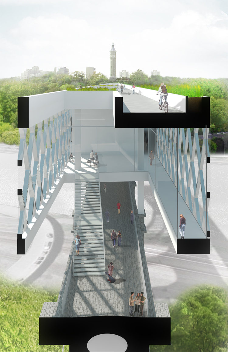 Une mobilité douce entre Manhattan et le Bronx capable de relier par des espaces verts et regenerer leurs place dans le tissu urbain. Depuis Manhattan le parc regagne une perméabilité pour les marcheurs désirant aller d’une rive à l’autre.