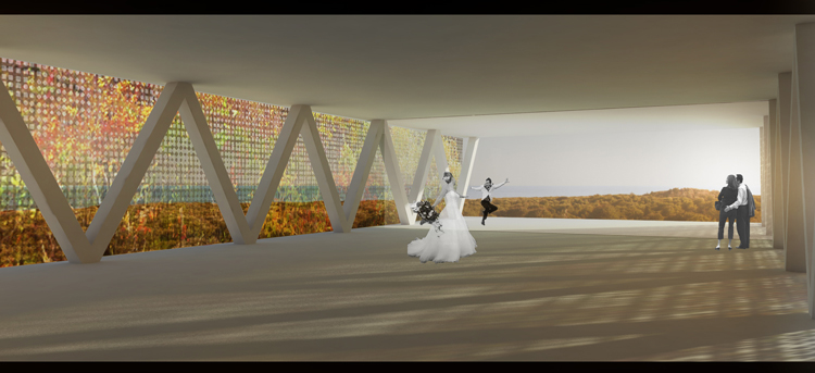 L’analyse de la zone du projet, qui a démontré la coupure transversale de la péninsule en deux, nous a amené à dessiner quelques tracés nets pour lier l’ensemble du site et le contexte dans une entité cohérente.
